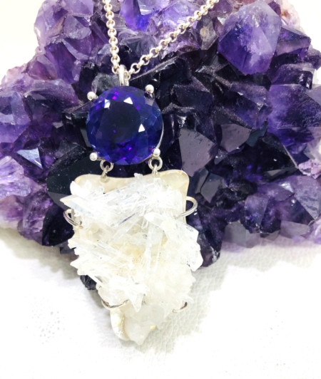 Colgante de amatista facetada y cuarzo transparente con cadena de plata 925