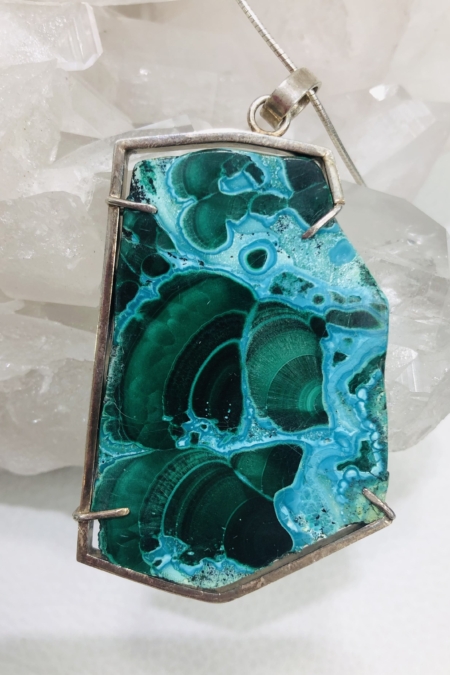 Colgante de Crisocola con Malaquita y Cornetita y cadena semi rígida de plata 925