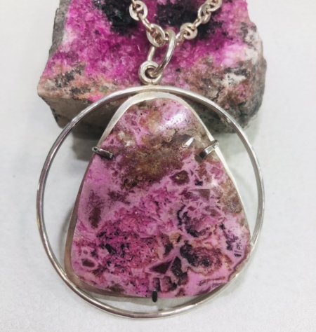 Colgante de Esferocobaltita pulida con cadena de plata 925