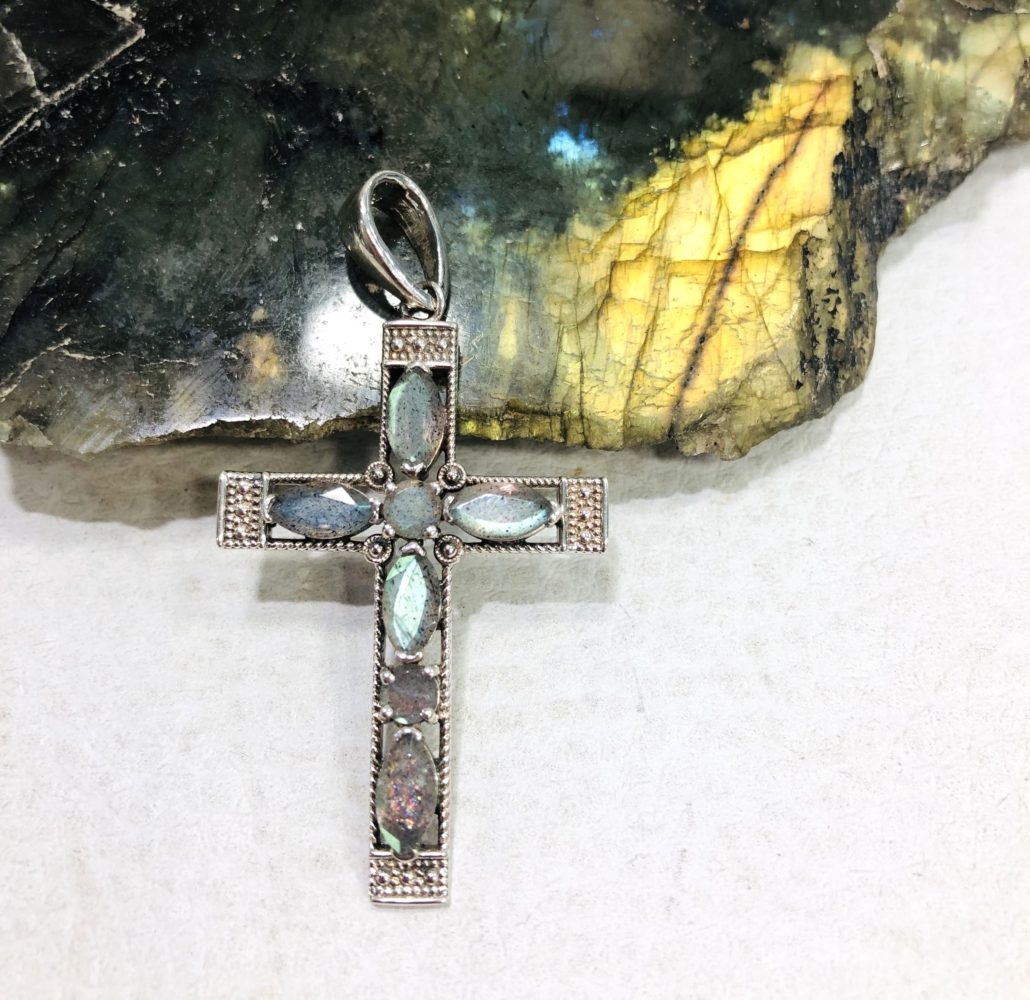 Colgante en cruz de Labradorita con plata 925