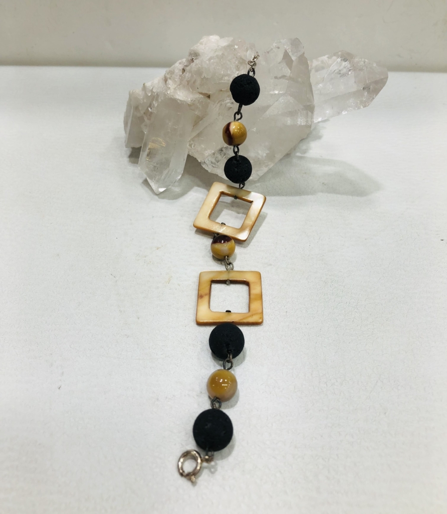 Pulsera de Lava volcánica, Nácar y Jaspe Mookaita